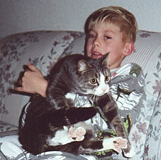 We have several pets: our dog Scooter, my parakeet and two cats. Here is one of my favorite cats, named Frisky. I have a new cat now named Maddie.